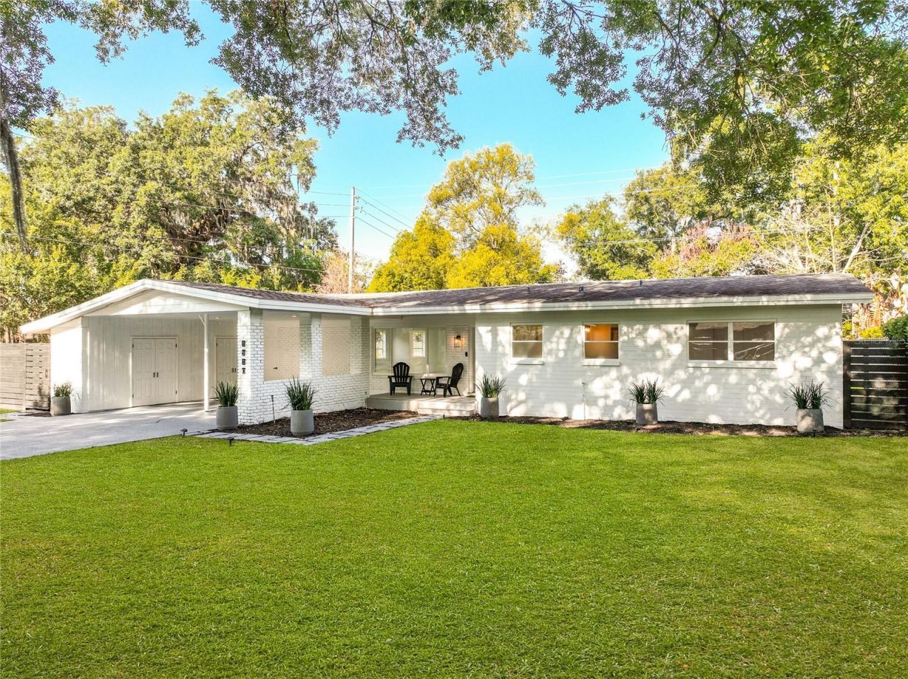 One or more photo(s) has been virtually staged. BEL AIR BEAUTY! Situated on a quiet, tree-lined street, this mid-century modern home blends modern updates with timeless charm. Offering three well-proportioned bedrooms and two full bathrooms, it provides an ideal layout for comfortable living, making it the perfect spot for your growing family. A covered parking area and inviting front porch create a warm welcome. Inside, the spacious living area is filled with natural light from large windows and sliding doors, offering an open and airy setting for both everyday living and entertaining loved ones. You will be immediately drawn to the renovated kitchen featuring modern white cabinetry, quartz countertops, a designer range hood, and stylish backsplash. Both the guest bathroom and primary en suite have been thoughtfully refreshed with new flooring, fixtures, and finishes. Set on nearly a 1/4 acre lot, the property offers expansive front, side, and backyard space-a blank canvas for creating your own private outdoor retreat. The covered rear patio also provides a relaxing place to unwind after a long day. Additional highlights include an enclosed laundry room with extra storage, new recessed lighting, updated electrical and plumbing systems, newer roof (7 years), newer HVAC system (3 years), new exterior doors, updated interior hardware, and fresh interior and exterior paint. If location is your motivator, this home offers one of the best in Orlando! Located in the highly sought-after Bel Air Hills neighborhood, you'll are just a few blocks from the Hourglass District and just minutes from Thornton Park, the Milk District and the SoDo District, as well as Downtown Orlando's dining, entertainment, athletic and cultural venues. Convenient access to State Road 408 and I4 adds to the appeal. Added bonus...the A rated schools include Lake Como K-8 and Boone High School. Please reach out to book your showing today, we don't expect this gem to last long!