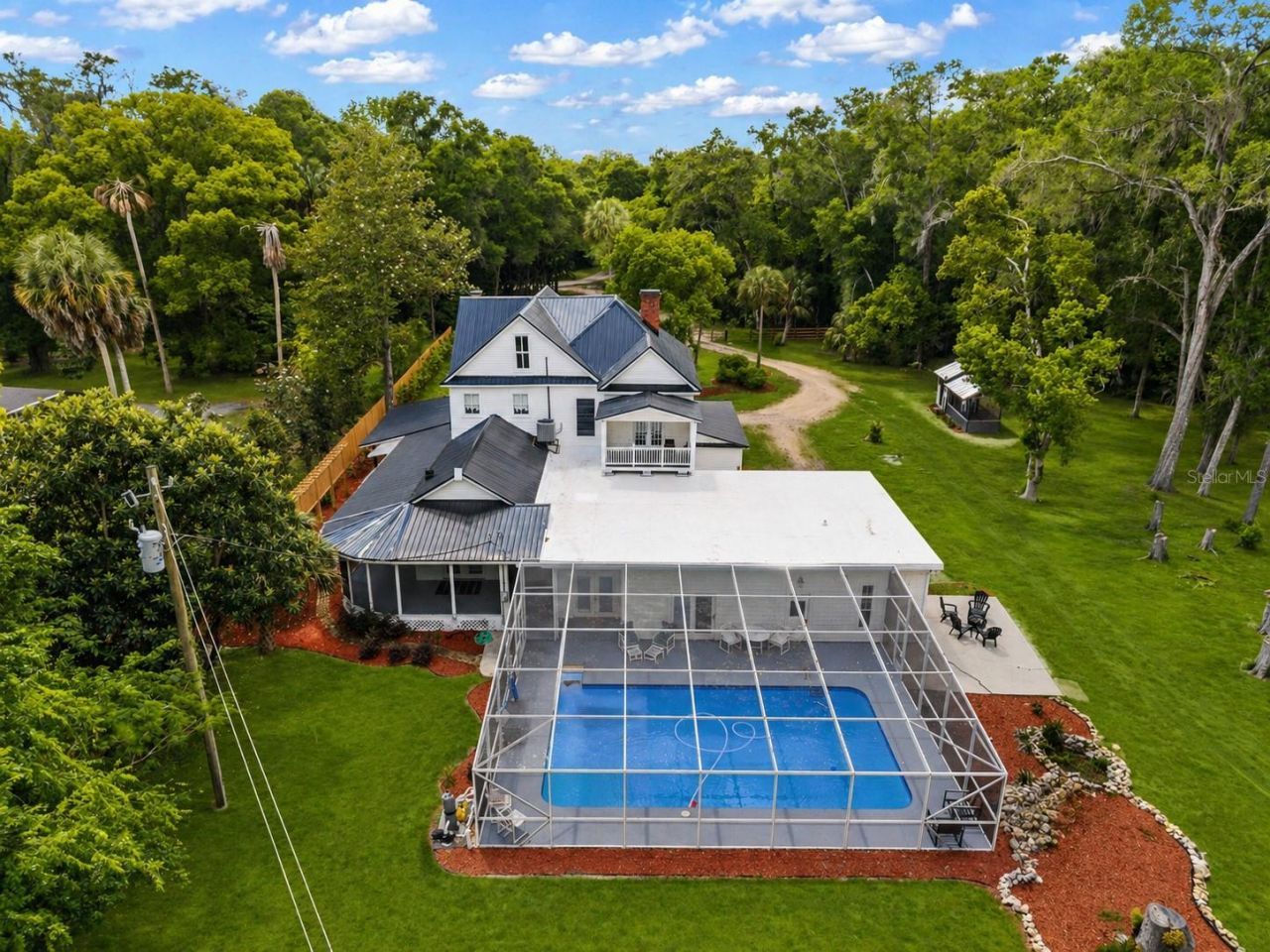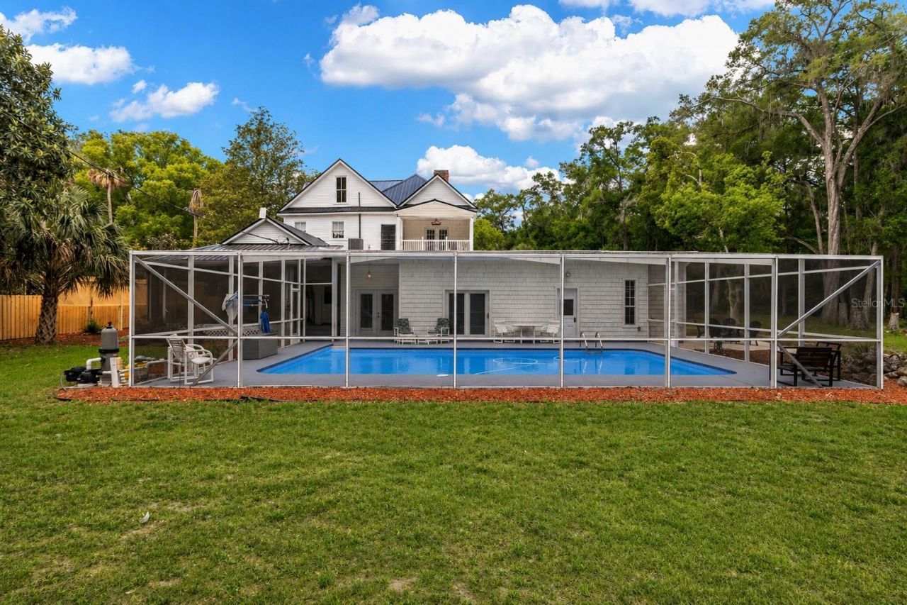 Step into a rare blend of historic charm and artistic elegance with this beautifully preserved 1901 three-story estate, set on 10 serene acres. Featuring 5 spacious bedrooms and 3.5 baths, this lovingly cared-for home offers timeless character paired with thoughtful updates for modern living. Offered fully furnished, the interiors are richly and artistically curated, showcasing stunning chandeliers, hand-painted wallpaper, and intricate architectural details throughout. Gleaming hardwood floors flow seamlessly from room to room, while inviting spaces like the parlor and formal dining room create the perfect setting for both quiet evenings and memorable gatherings. Enjoy the tranquility of the outdoors from the welcoming front and back porches or the private balconies overlooking peaceful surroundings. The screened-in pool provides a relaxing retreat, ideal for enjoying warm days in comfort. The property itself offers a unique homesteading opportunity, with ample space to cultivate, garden, or simply enjoy the beauty of nature. A durable black metal roof adds to the home's long-term appeal, while the detached workshop provides flexibility for hobbies, storage, or creative pursuits. This is more than a home, it's a lifestyle property filled with history, artistry, and endless possibilities including amazing potential as an income producing Bed and Breakfast.