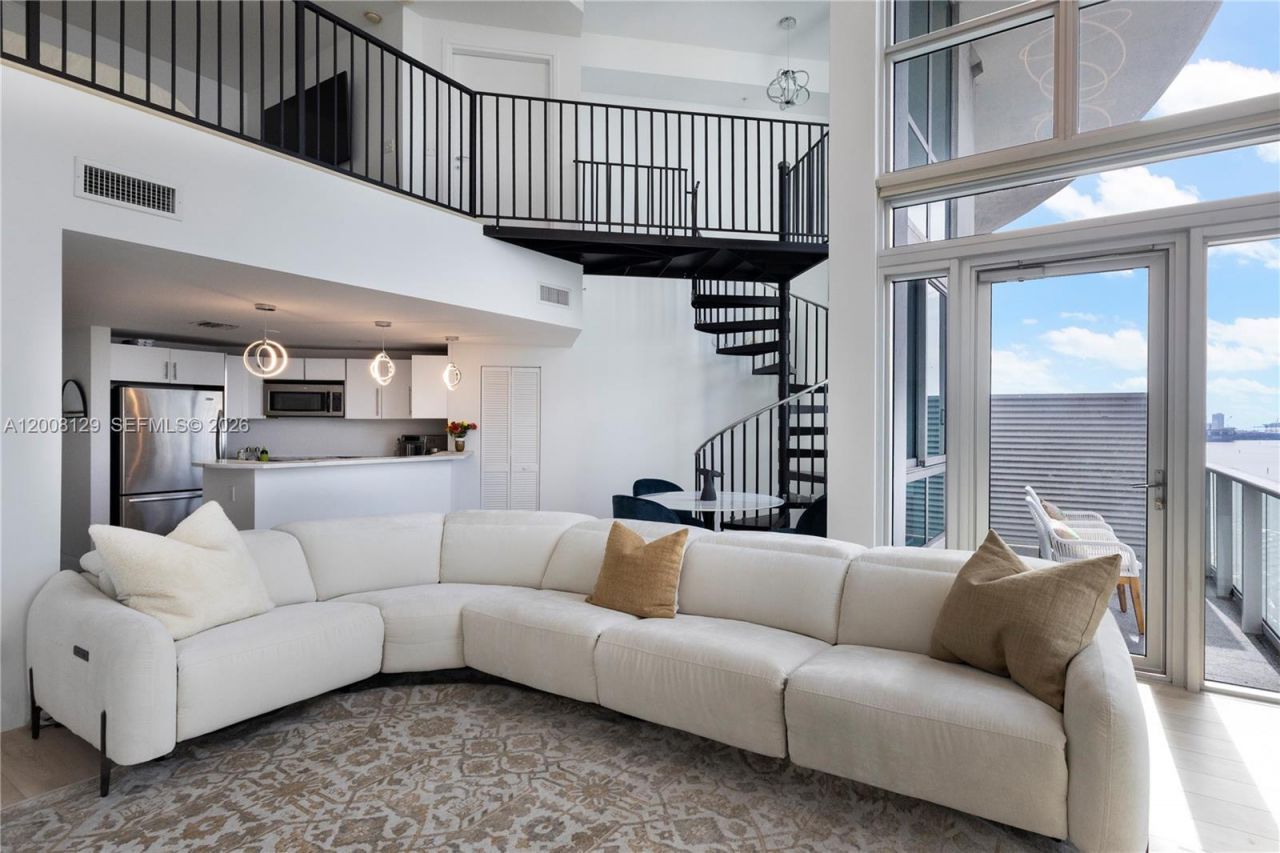 Stunning fully furnished Loft with soaring 20-ft ceiling windows, and stunning water and city views. Features include a split floor plan, granite countertops, tile floors, washer/dryer, large balcony, and high-end Arhaus furnishings. Assigned parking space on the same floor for easy access. Full-service building offer 24/7 front desk, valet congierge, pool, sauna, jacuzzi, gym, business center, and VIP Silverspot cinema. Prime location, stepts away from Whole Foods, Zuma, Novikov, Cipriani, and short walk to Brickell City Centre. All utilities included in the rental! Lease available for 6 months or longer, extendable.